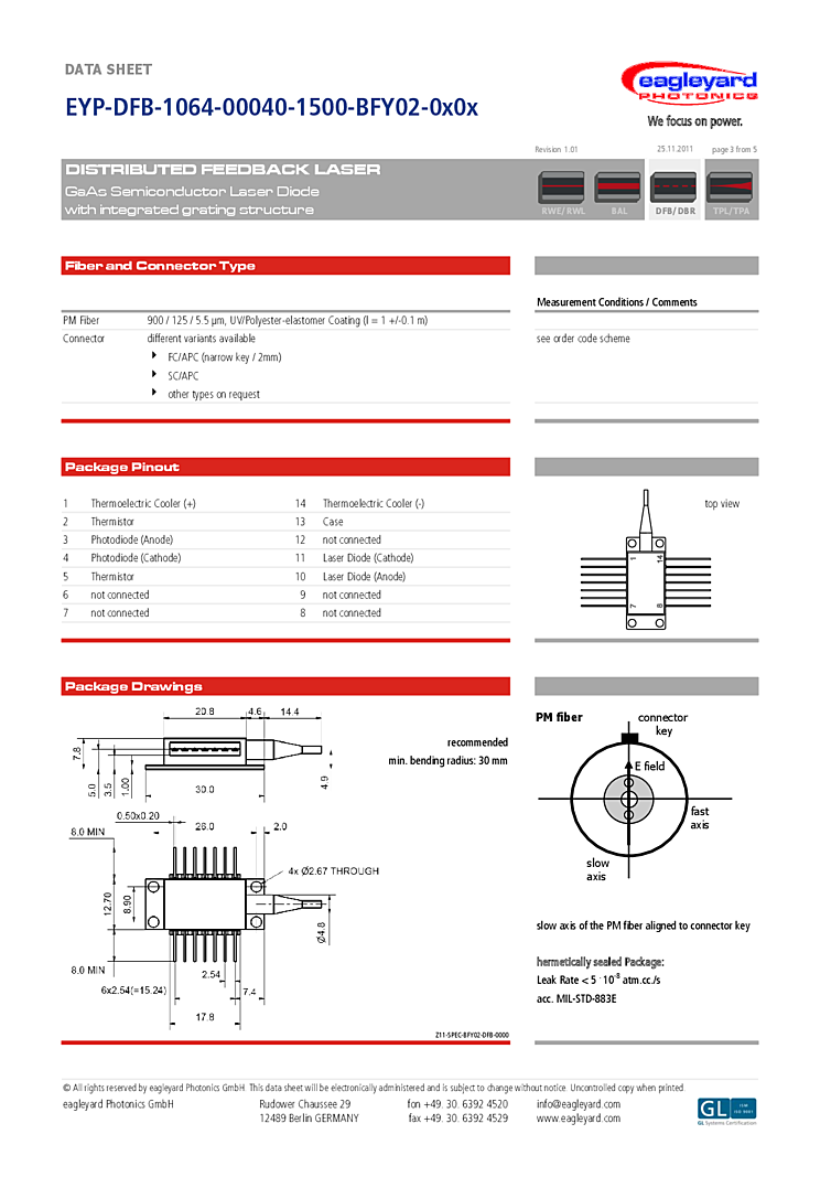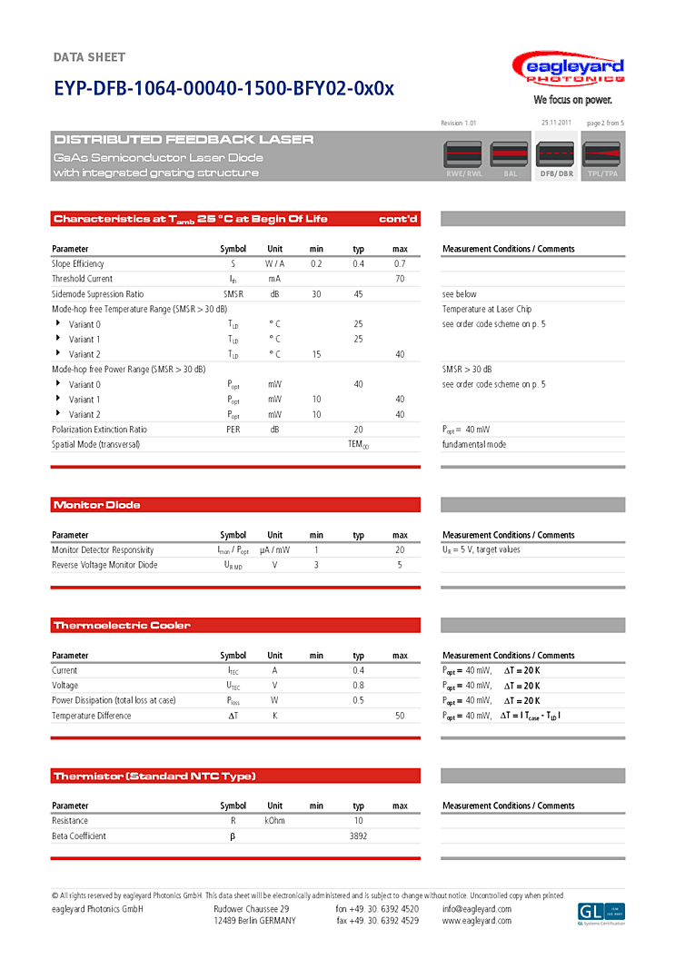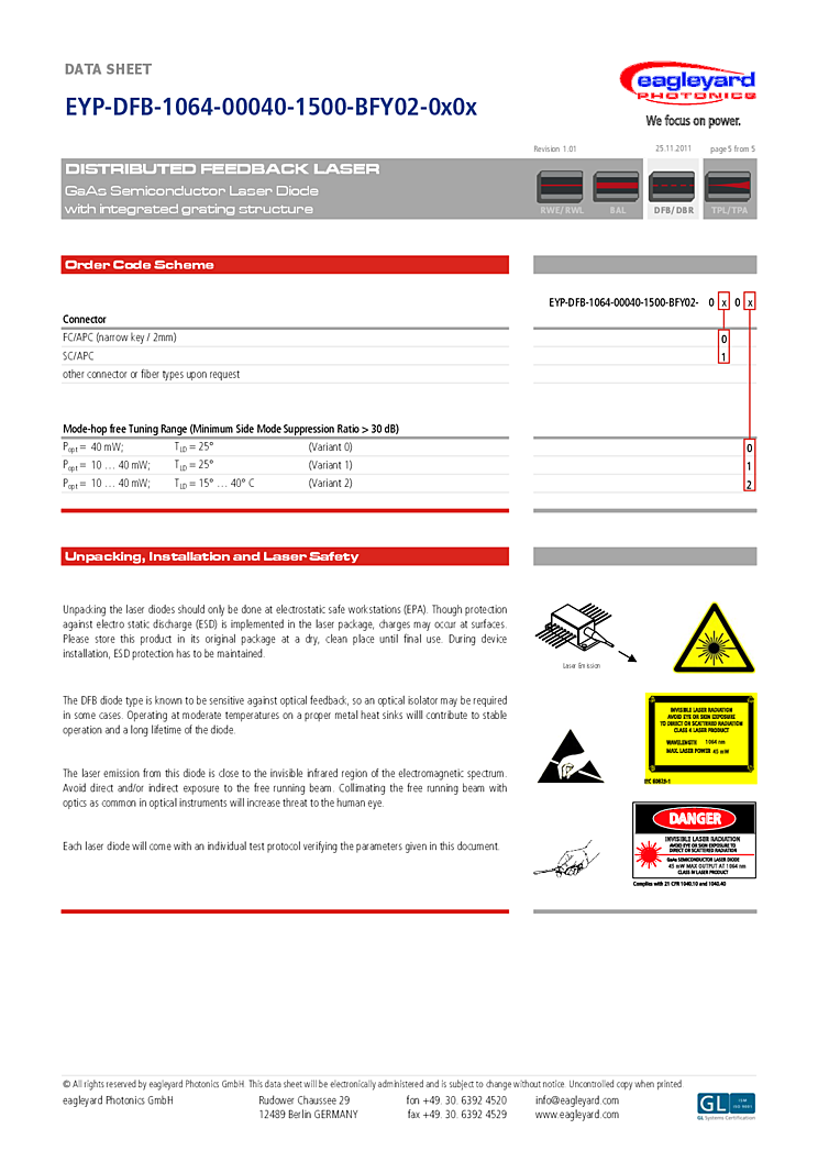 型番: メーカー:eagleyard Photonics GmbH 商品コード:L001491