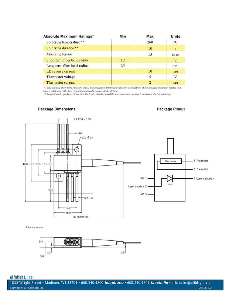 波長: 940nm-940nm 出力: 6000mW-6000mW パッケージ: 6 pin butterfly テクノロジー: uncooled multimode pump