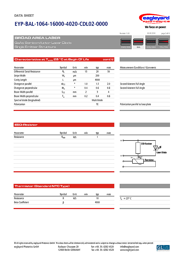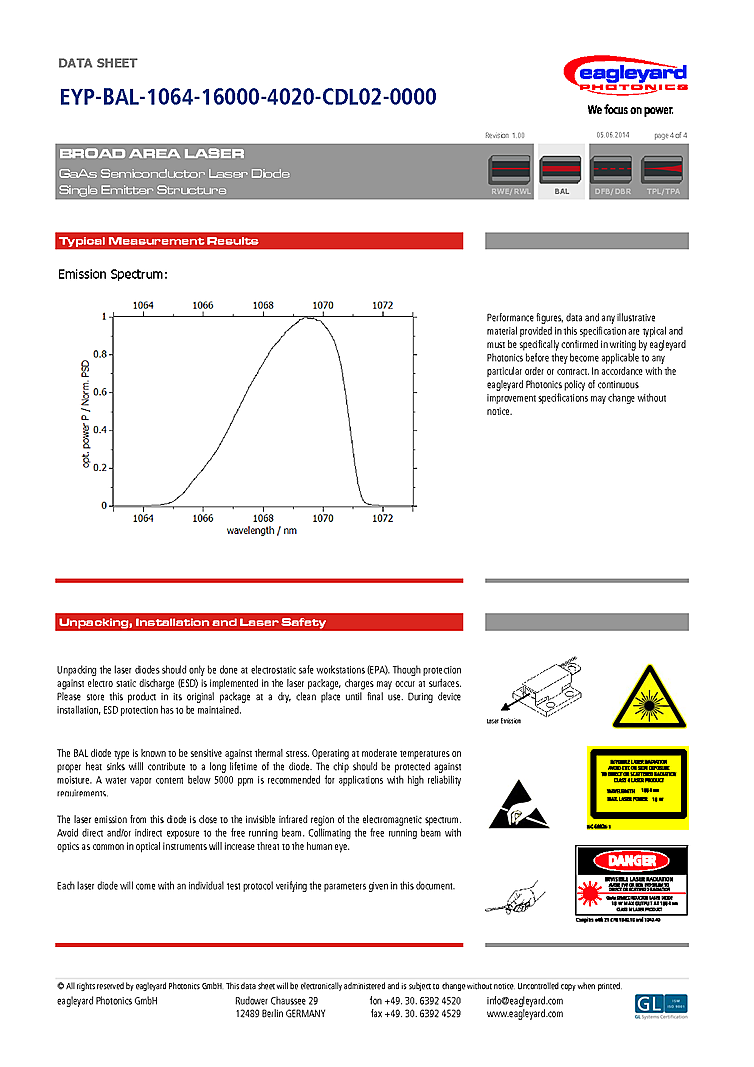 型番: メーカー:eagleyard Photonics GmbH 商品コード:L001549