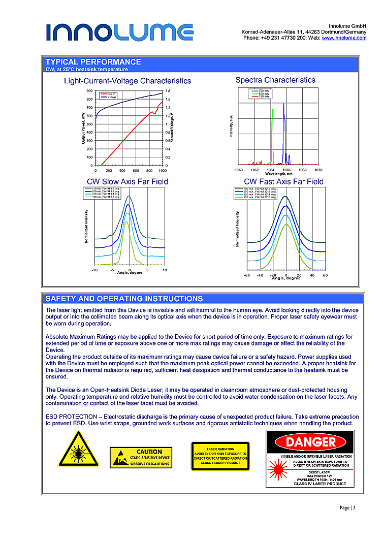 1060nm-1085nm features include 500mW of optical output power, proprietary mirror coating technology enabling high reliability