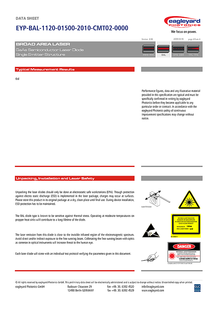 型番: メーカー:eagleyard Photonics GmbH 商品コード:L001571