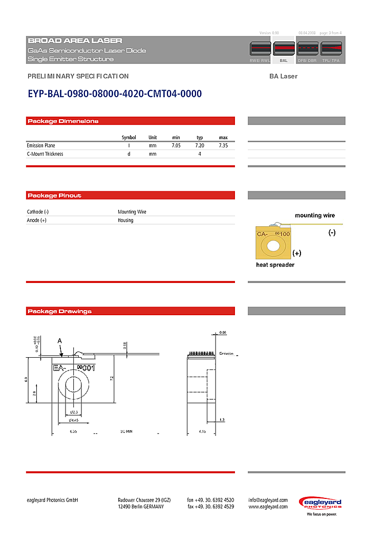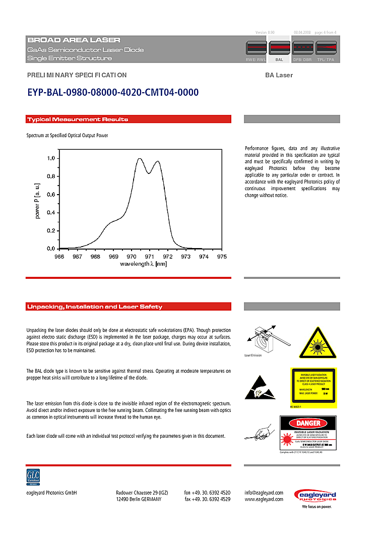 型番: メーカー:eagleyard Photonics GmbH 商品コード:L001644