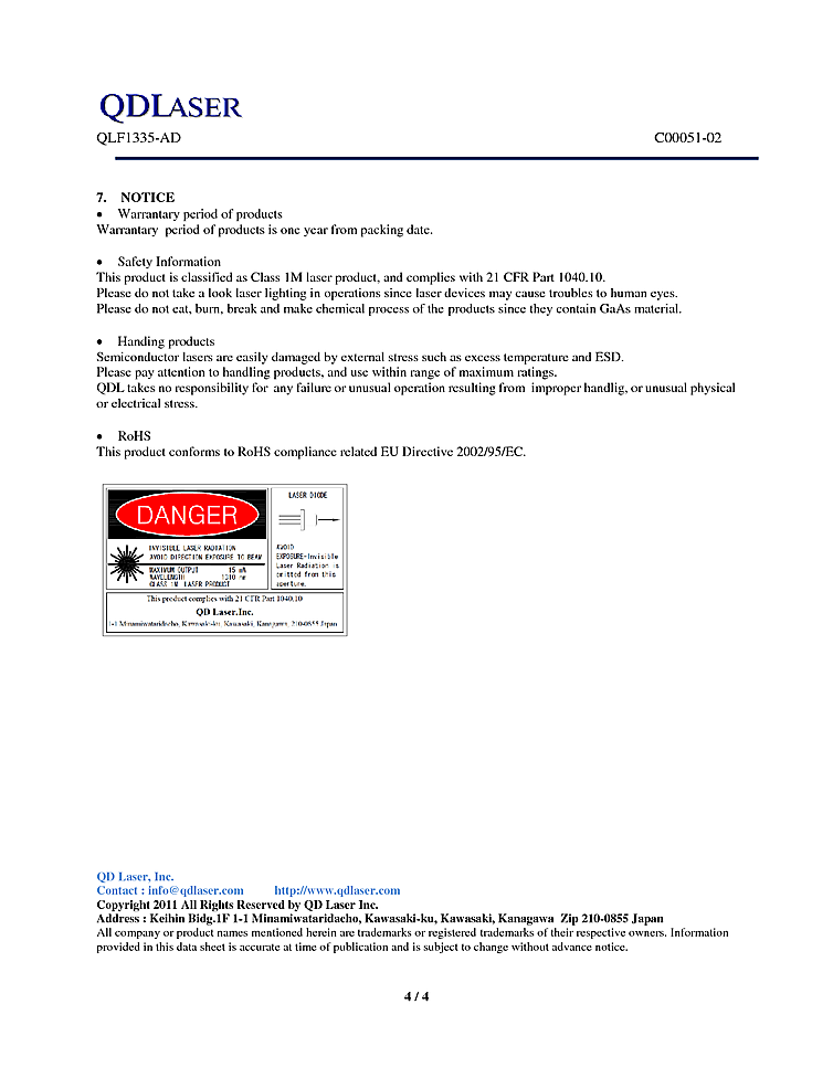 型番: メーカー:QD Laser 商品コード:L001732