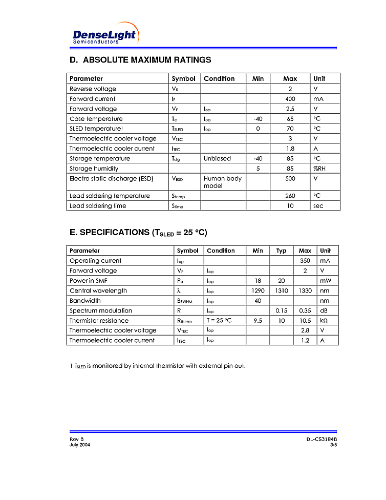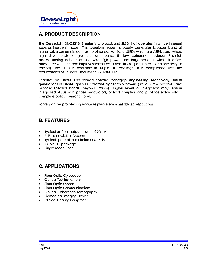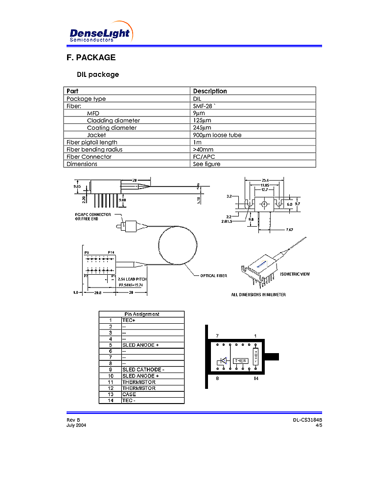 波長: 1310nm-1310nm 出力: 20mW-20mW パッケージ: DIL テクノロジー: SLED