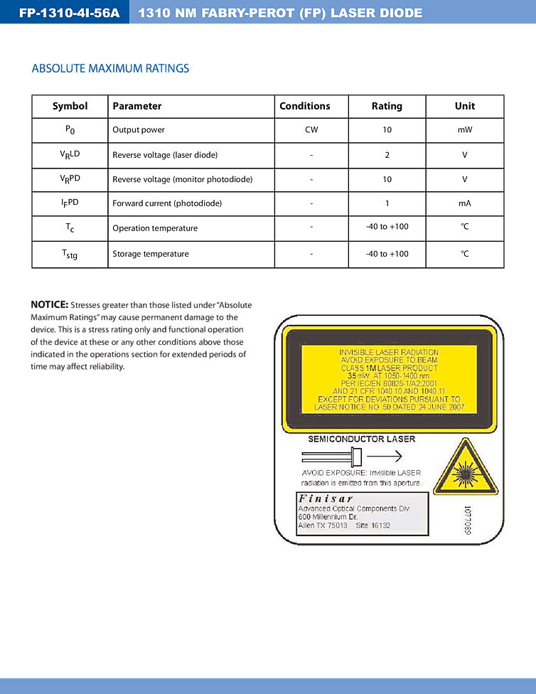 型番: メーカー:Finisar Corporation 商品コード:L001954