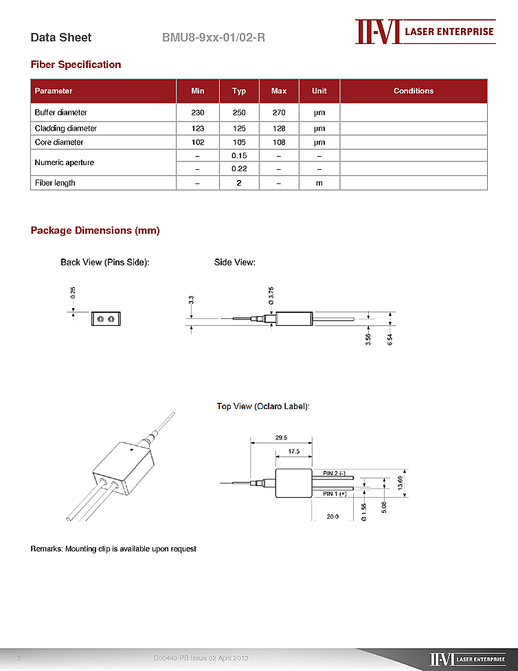 商品コード: L003710 < FEATURES > Highly reliable Higher Power < APPLICATION > Pumping of solid-state lasers and...