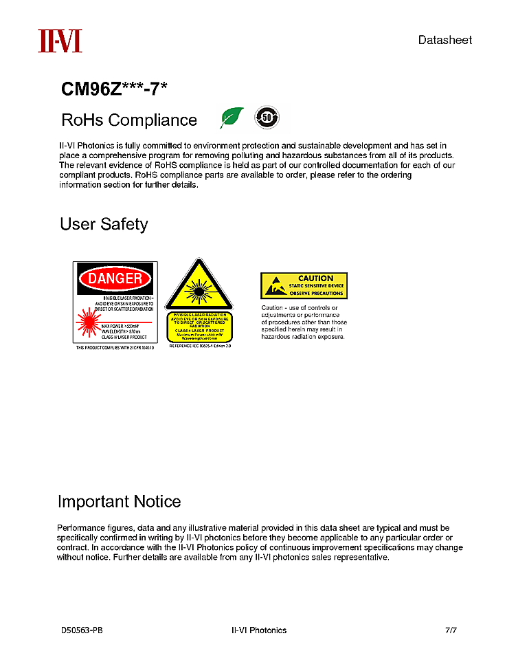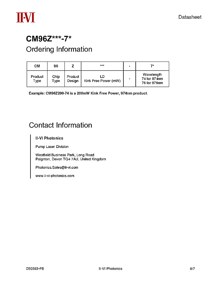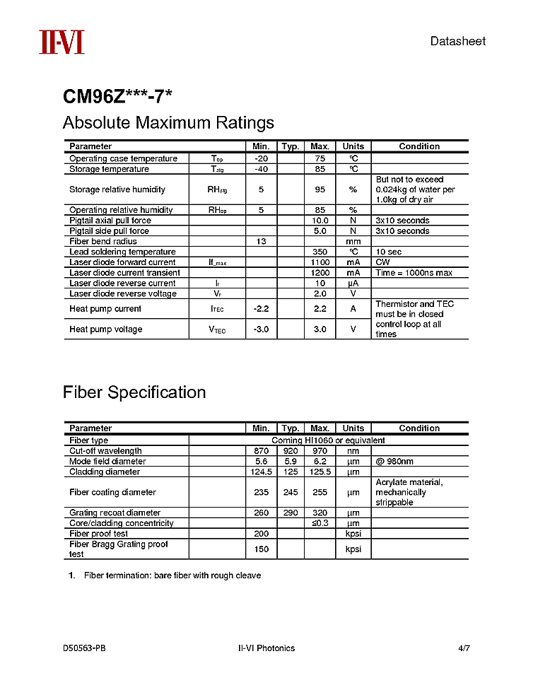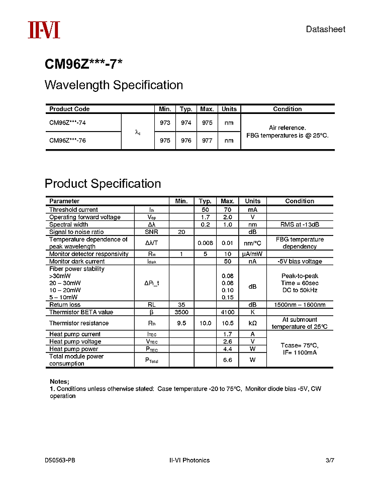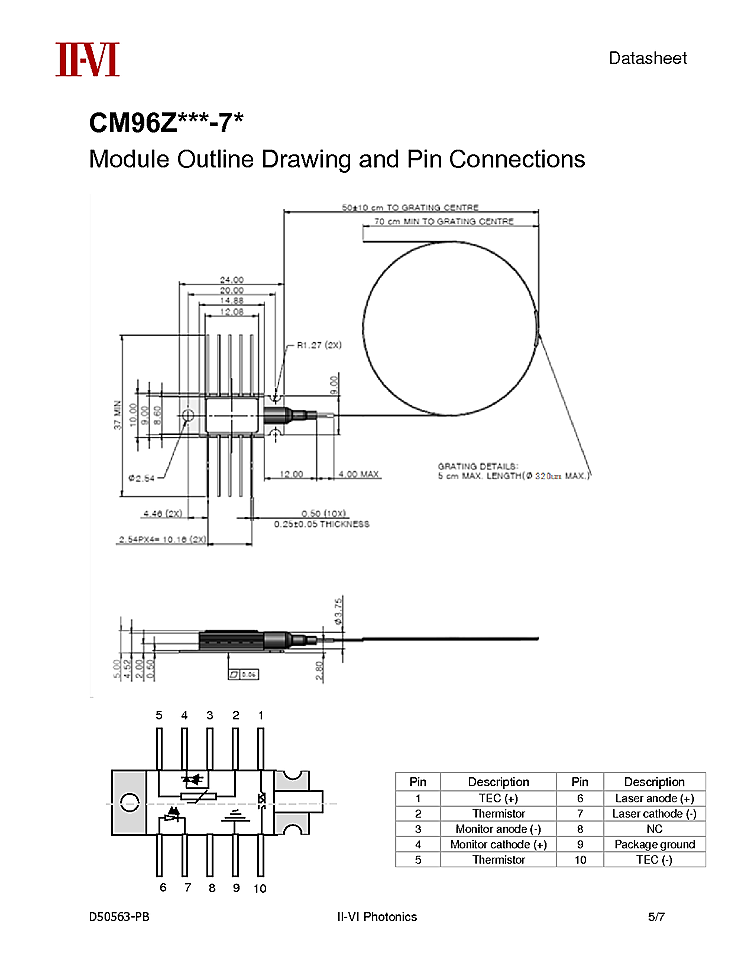 The CM96Z***-7* series pump module utilizes a fiber Bragg grating design for enhanced wavelength and power