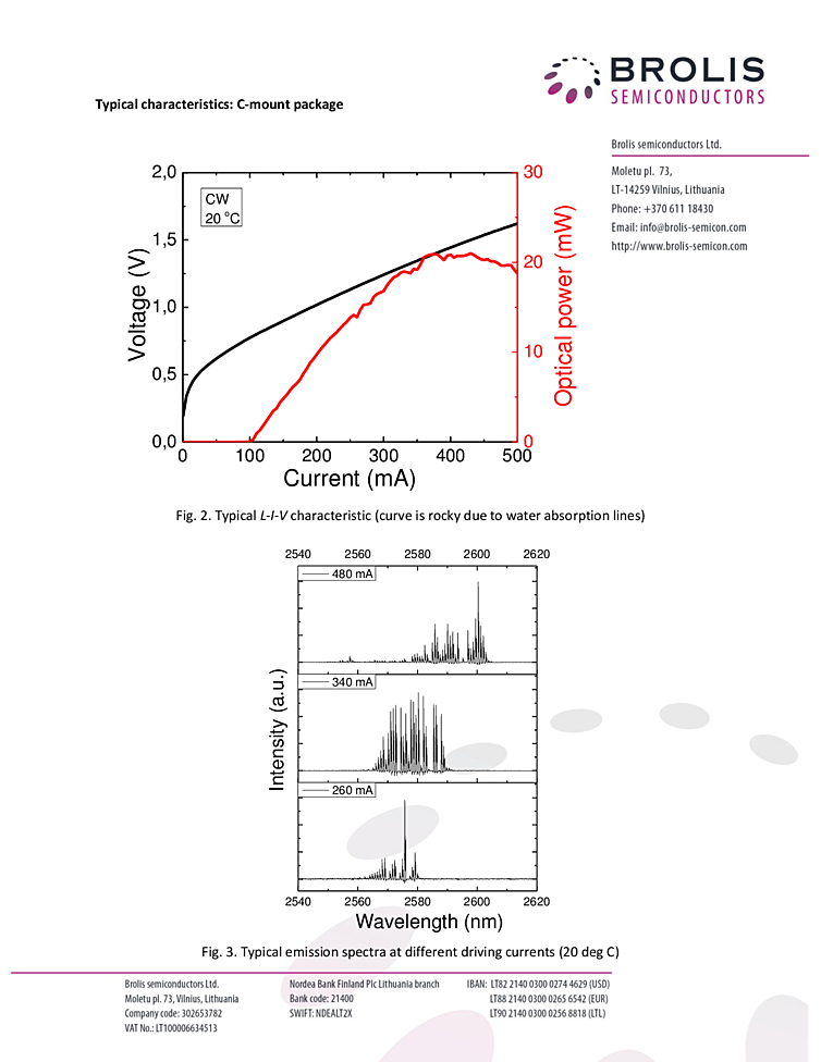 波長: 2600nm-2600nm 出力: 20mW-20mW パッケージ: c-mount テクノロジー: Fabry-Perot