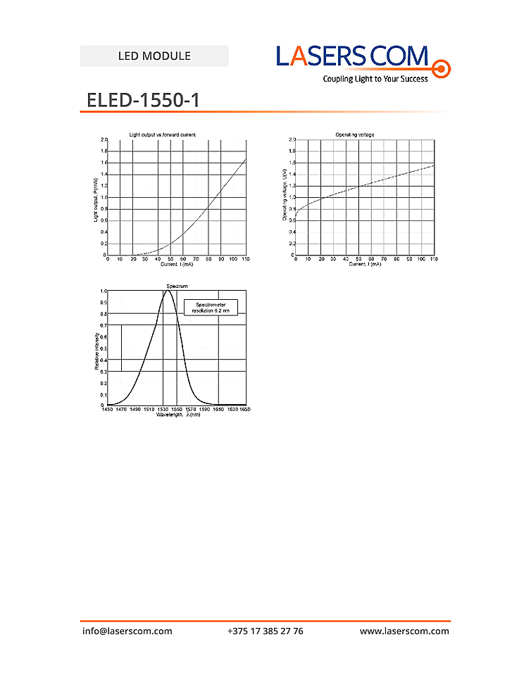 1550nm SLED from LasersCom was designed for applications as a IR light source or fiber based optical sensors. Available packages include TO-can and DIL. For automatic power control the SLED features an integrated photodiode. SLED output power up to 1mW at a center wavelength of 1550nm.