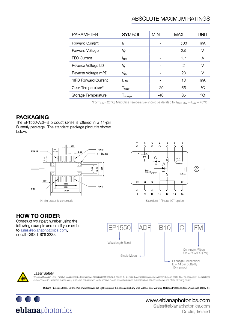 型番: メーカー:Eblana Photonics Ltd. 商品コード:L002361