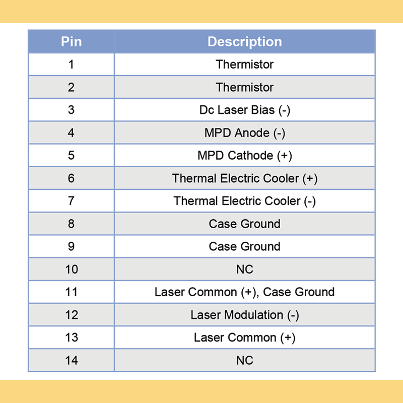 These butterfly packaged DFB laser diodes from EMCORE are offered at C-Band wavelengths from 1526nm to 1563nm. They are offered at ITU grid wavelengths. They come at standard 100 GHz spacing, with 50 GHz spacing available on request. These DFB lasers offer a minimum of 10 mW of output power from a single mode fiber with FC/APC termination. They come with an integrated TEC cooler, a 10K thermistor, a monitor PD and an optical isolator. These butterfly packaged 1550 nm sources offer a high efficiency coupling scheme to deliver >10 mW and are offered in an industry standard "Type 2" pin configuration. Please request your specific wavelength at the time of order or when you request a quotation.