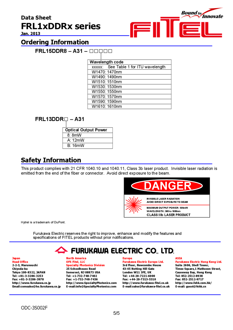These laser diodes from Fitel Furukawa are designed for wireless communications applications as well as DWDM and CWDM transmission applications. These modules offer high power and high linearity across the C-band, including 1550nm, and are offered in industry standard butterfly packages. These modules have an integrated TEC, monitor PD and isolator. They are offered at standard I.T.U. grid frequencies and are RoHS compliant as well as OC-48 compliant package footprint.