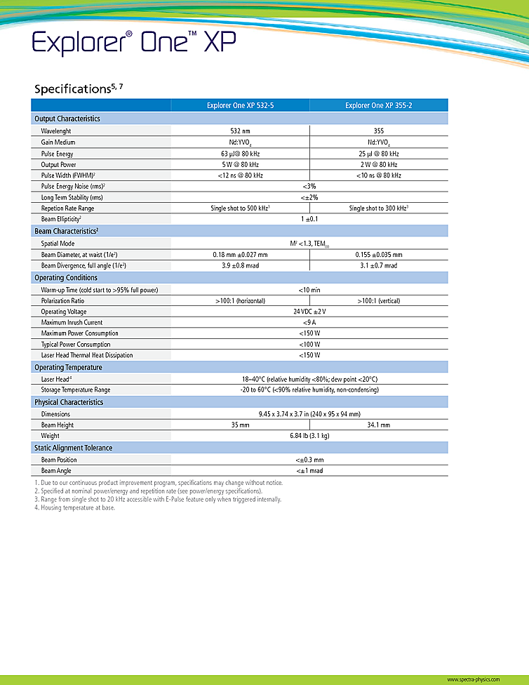 Nanosecond laser with compact integrated design from Spectra-Physics. Applications for the diode pumps solid state laser include Thin film photovoltaic manufacturing, Marking - Stainless steel and other metals, HDPE, semiconductor wafers and LED chips, Resistor trimming and Micromachining. The all in one laser and electronics is lightweight (only 3kg) and air cooled which is ideal for integrating into marking applications. Gaussian beam with typical M2 <1.1 and high pulse energy stability of less the 3%. Single shot to 500 kHz pulse repetition interval and a 12ns pulse duration at 80kHz. Nanosecond laser with wavelength of 532nm and output energy up to 63µJ.