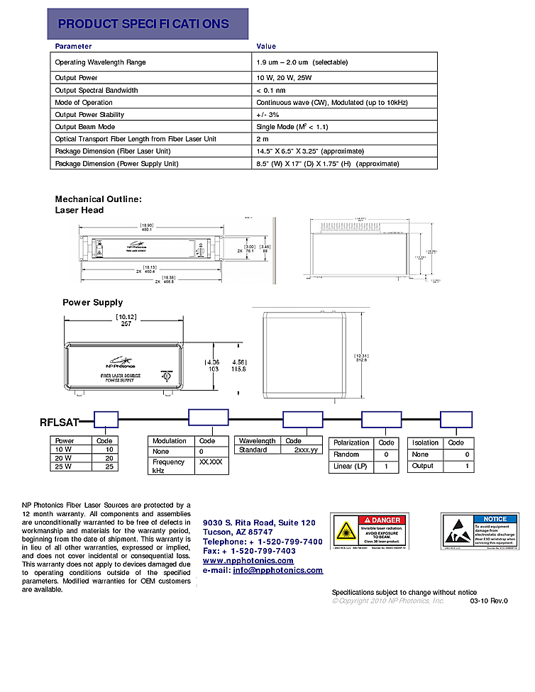 型番: メーカー:NP Photonics, Inc. 商品コード:L002578