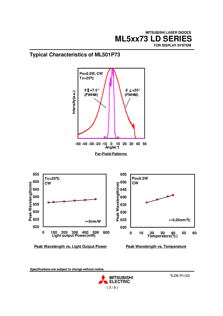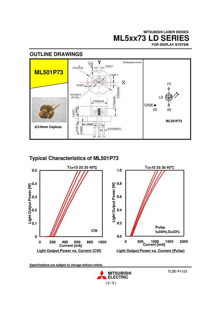 638nm Mitsubishi ML501P73 is a high-power, highly efficient semiconductor laser diode which provides emission wavelength of 638 nm and standard light output of 1.0W (pulse) and 0.5W (CW). This LD has broad-stripe structure which enables high output power.