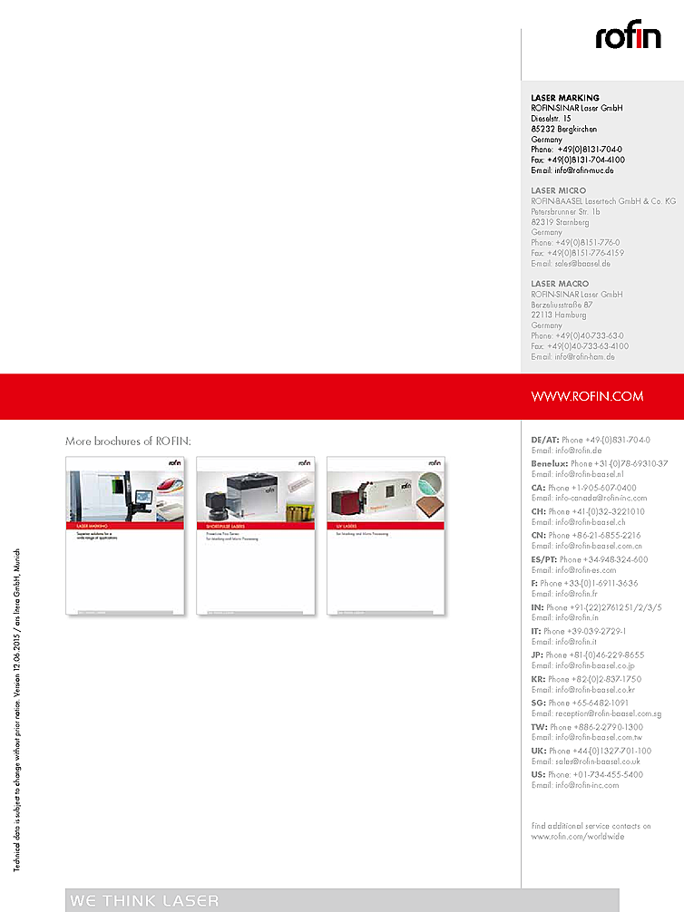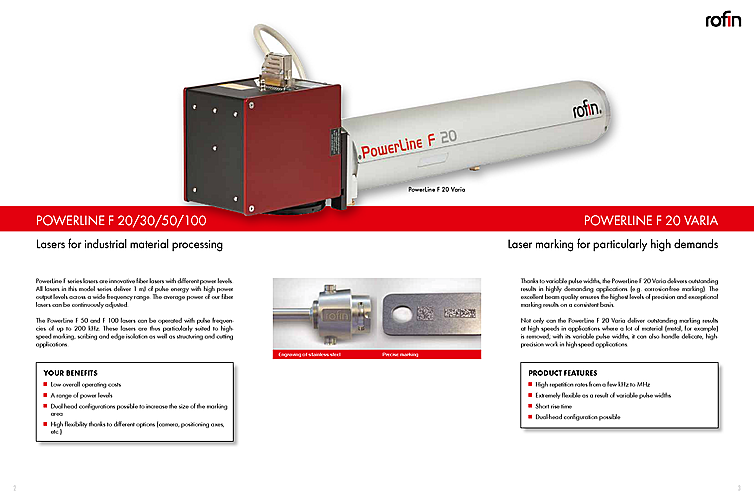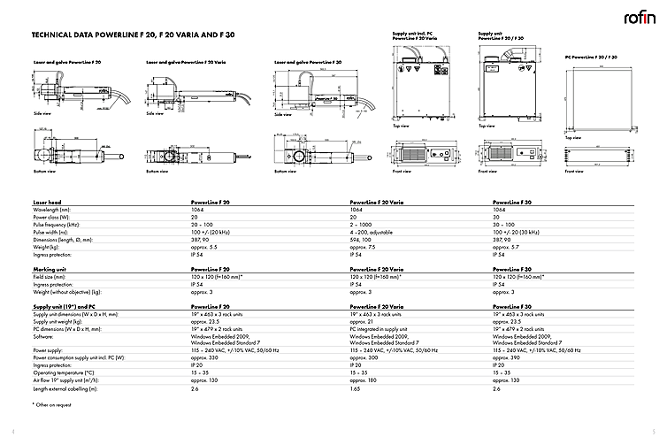 Fiber laser from Rofin features 1064nm wavelength output with optical power up to 20 watts. Nanosecond laser with pulse repetition interval of 2kHz to 1MHz with pulse duration of 4ns to 200ns which is user adjustable. Laser was designed for applications including speed marking, scribing and edge isolation as well as structuring and cutting. Features of the fiber laser include Low overall operating costs, range of power levels, Dual-head configurations possible to increase the size of the marking area and High flexibility thanks to different options (camera, positioning axes, etc.).