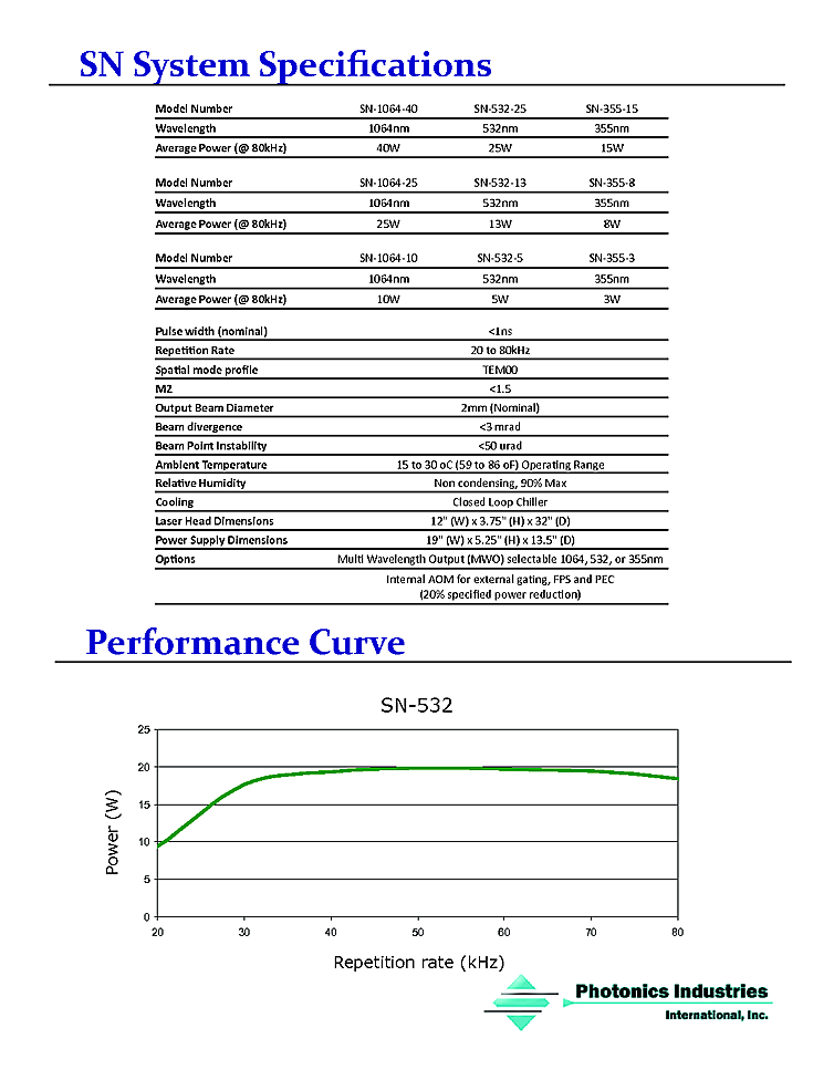 型番: メーカー:Photonics Industries International Inc. 商品コード:L002698