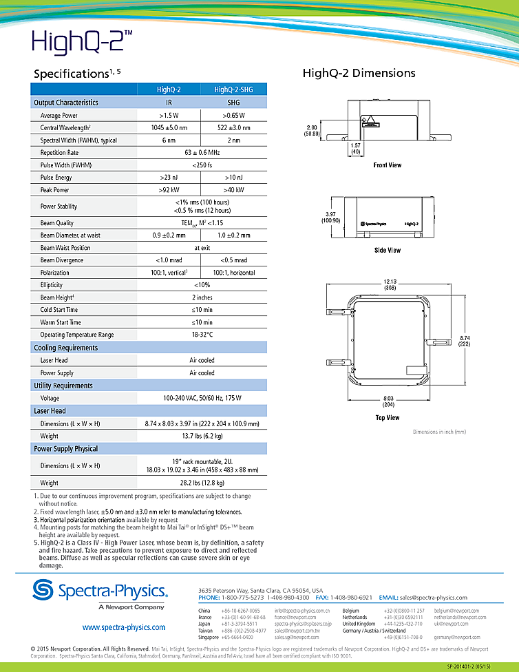 | 要問い合わせ | スペクトラ・フィジックス株式会社 | ||