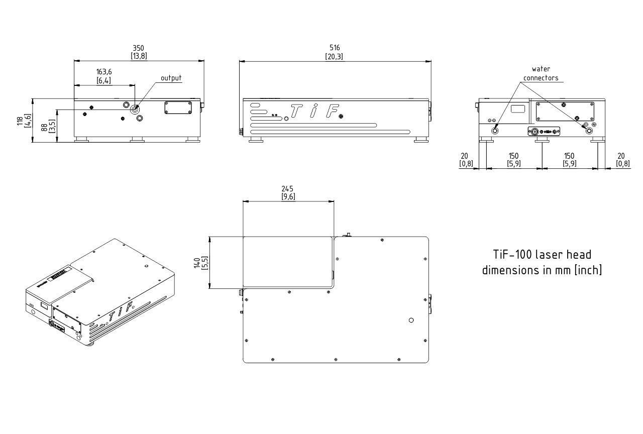 The monolithic thermostabilized body of the TiF-100 provides excellent passive stability of the output radiation parameters.