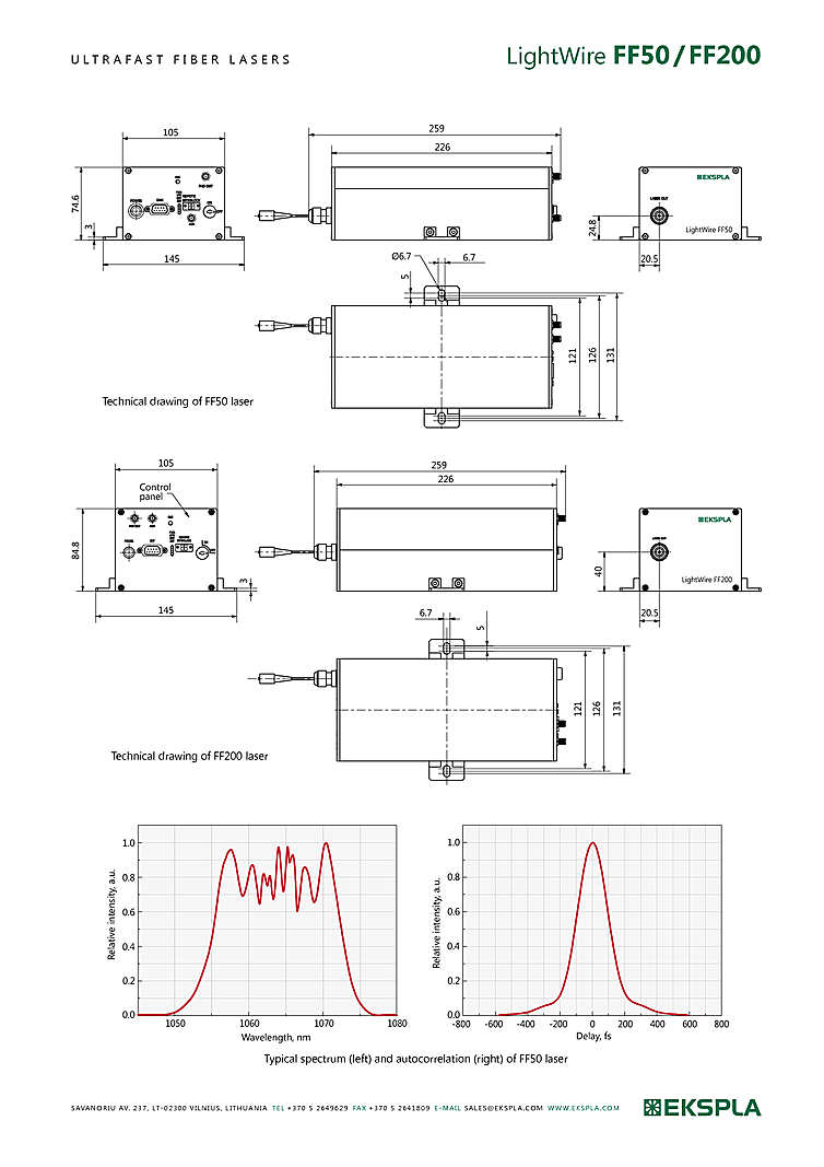 Fiber laser from Ekspla with femtosecond pulse output. Laser was designed for applications in Ultrafast spectroscopy and Time-domain terahertz spectroscopy. Fiber laser is a low maintenance compact and rugged design for easy integration into customer applications. Key features of the femtosecond laser include beam quality M2<1.5, pulse repetition rate of 30MHz, pulse duration of 130fs, and optional pulse picker. With the optional pulse picker the pulse repetition rate is adjustable from 30kHz to 30MHz. Fiber laser with output energy up to 5nJ at a wavelength of 1064nm.