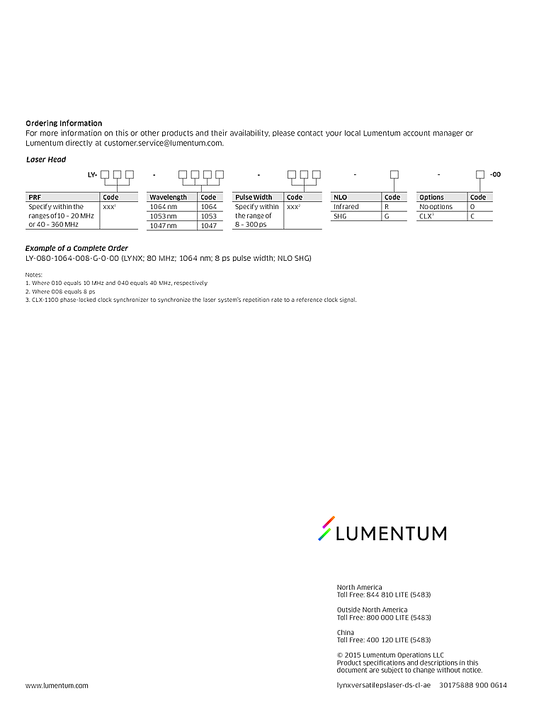 Lumentum Picosecond Laser designed for long life time and minimal maintenance. Picosecond laser features a passively mode locked all solid state design and pump laser diode. Output power up to 1 watt at 1064 nm.