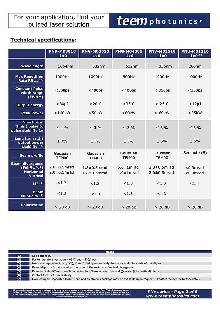 型番: メーカー:Teem Photonics 商品コード:L002823