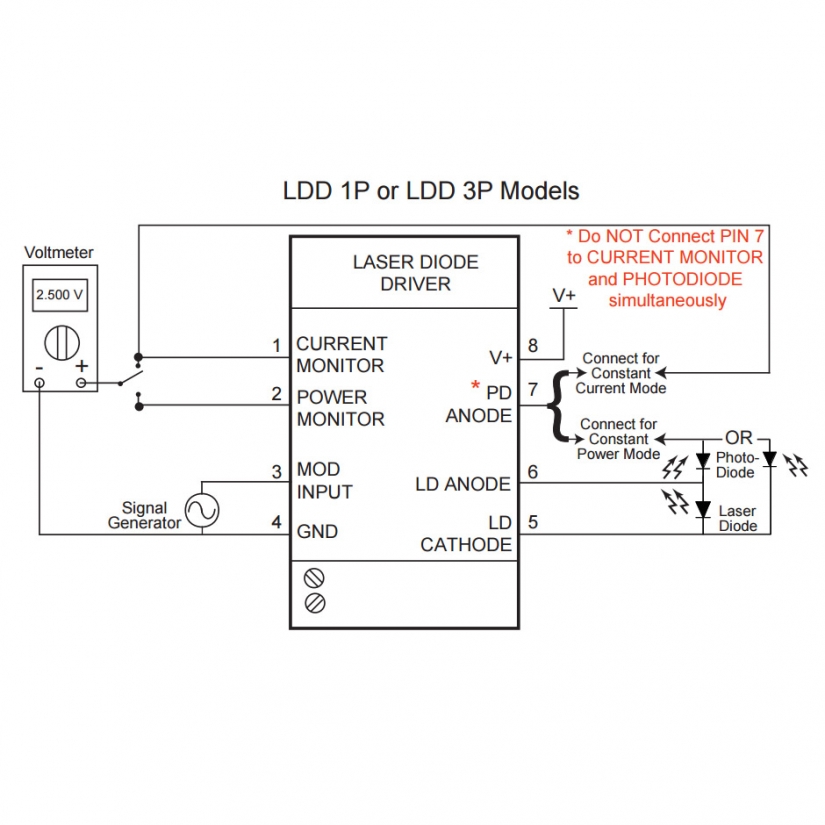 The LDD P Series of laser diode drivers come in three compact models to work with all laser diode / photodiode configurations. Each model is available in 200 mA and 400 mA versions to best meeet your laser diode requirements.