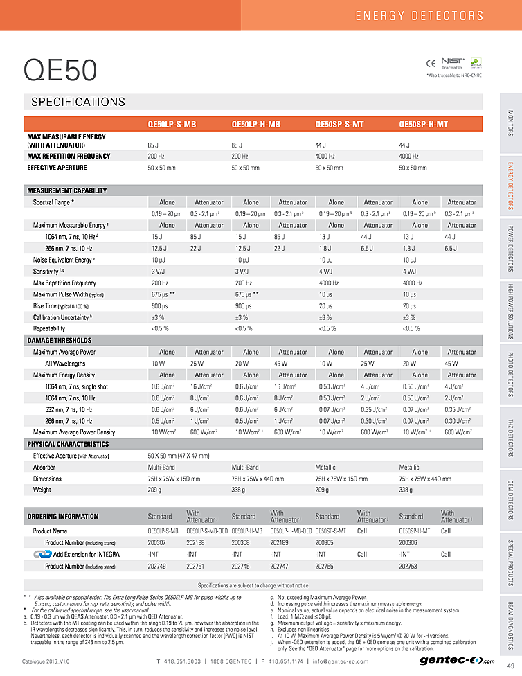 テクノロジー: Thermopile,Integrated Meter / Monitor,Integrating Sphere,Si Photodiode,InGaAs Photodiode,Ge Photodiode,Pyroelectric