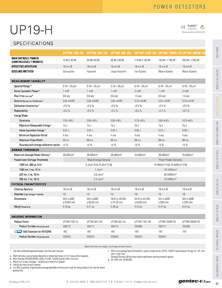 テクノロジー: Thermopile,Integrated Meter / Monitor,Integrating Sphere,Si Photodiode,InGaAs Photodiode,Ge Photodiode,Pyroelectric