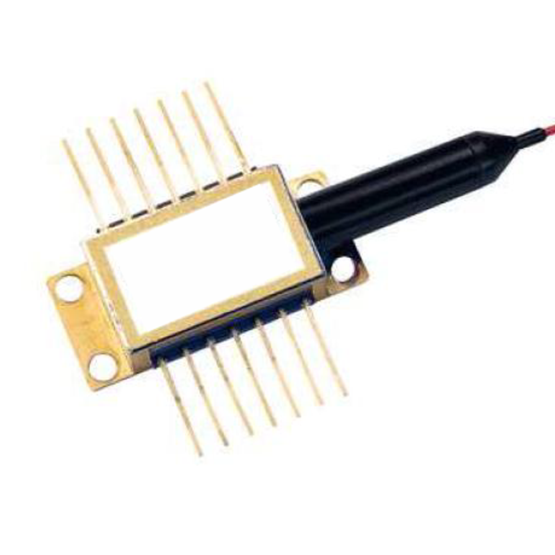 These butterfly packaged single mode laser diodes offer high peak power for sensing and LiDAR applications. They deliver over 1 Watt of pulsed peak power. They are fiber coupled and come with a 0.75 ~ 1 meter single mode fiber and an FC/PC connector. Other connector options are available on request. The standard 14 pin butterfly package includes an monitor diode, a cooler and a 10 kOhm thermistor.