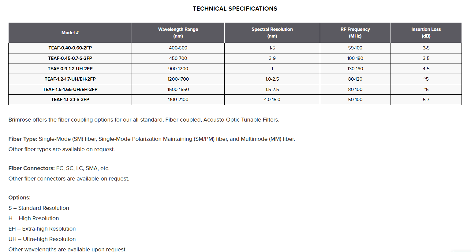 型番:TEAF-0.40-0.60-2FP、TEAF-0.45-0.7-S-2FP、TEAF-0.9-1.2-UH-2FP、TEAF-1.2-1.7-UH/EH-2FP、TEAF-1.5-1.65-UH/EH-2FP、TEAF-1.1-2.1-S-2FP メーカー:Brimrose Corporation of America 商品コード:L003283