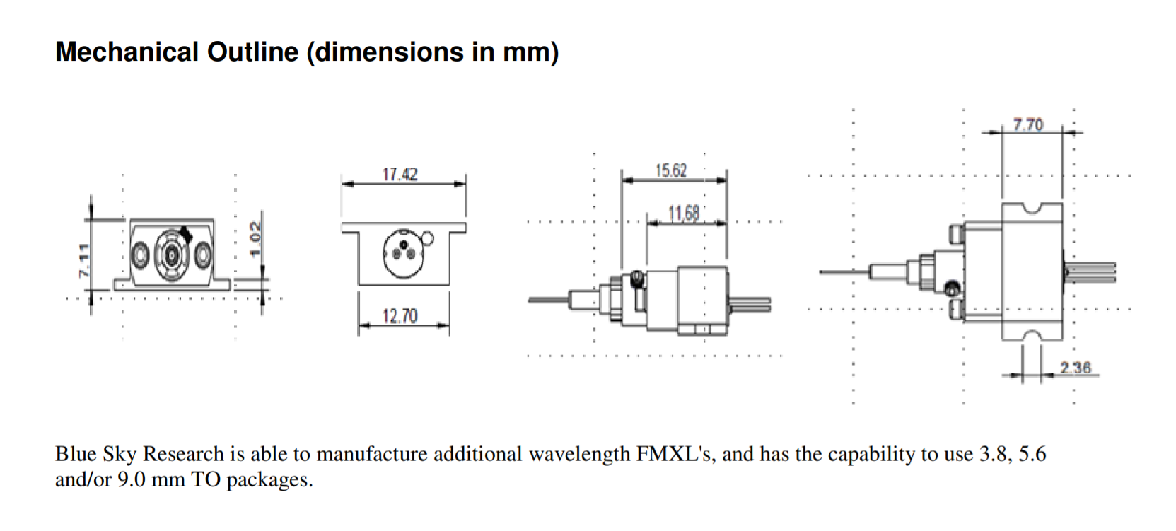 FiberMax635 is a fiber-pigtailed red laser module delivering superior performance for today’s demanding electro-optic applications. Based on Blue Sky Research laser packaging technology, the FiberMax635 provides excellent coupling efficiency and stability in a cost effective package. The thermally stable design of the FiberMax635, based on our standard FiberMAX packaging technology, is a proven, stable package with many thousands of lasers operating in demanding applications. The units are offered with Multimode, Polarization Maintaining Single Mode or Single Mode fiber, 3mm or 0.9mm jacketing and a range of collimator options.