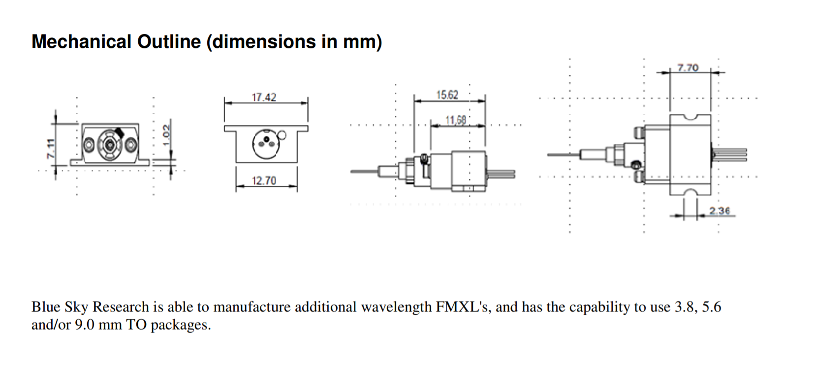 FiberMax830 is a fiber-pigtailed red laser module delivering superior performance for today’s demanding electro-optic applications. Based on Blue Sky Research laser packaging technology, the FiberMax830 provides excellent coupling efficiency and stability in a cost effective package. The thermally stable design of the FiberMax830, based on our standard FiberMAX packaging technology, is a proven, stable package with many thousands of lasers operating in demanding applications. The units are offered with Multimode, Polarization Maintaining Single Mode or Single Mode fiber, 3mm or 0.9mm jacketing and a range of collimator options.