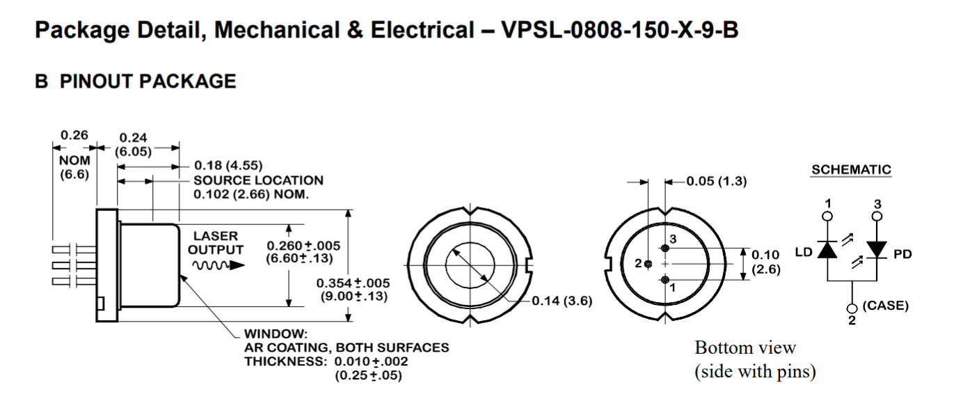The VPSL-0808-150-X-9-B is an 0.808 µm band, MOCVD grown, circularized, laser diode with a multi-quantum well (MQW) structure. It is suitable as a light source for DPSS pumping, imaging, projection, and various other types of optical equipment. Combined with an integrated, internal beam correcting optic and encased in a hermetically sealed package, this is a highperformance, highly reliable, and long life laser diode available with an integral photodiode.