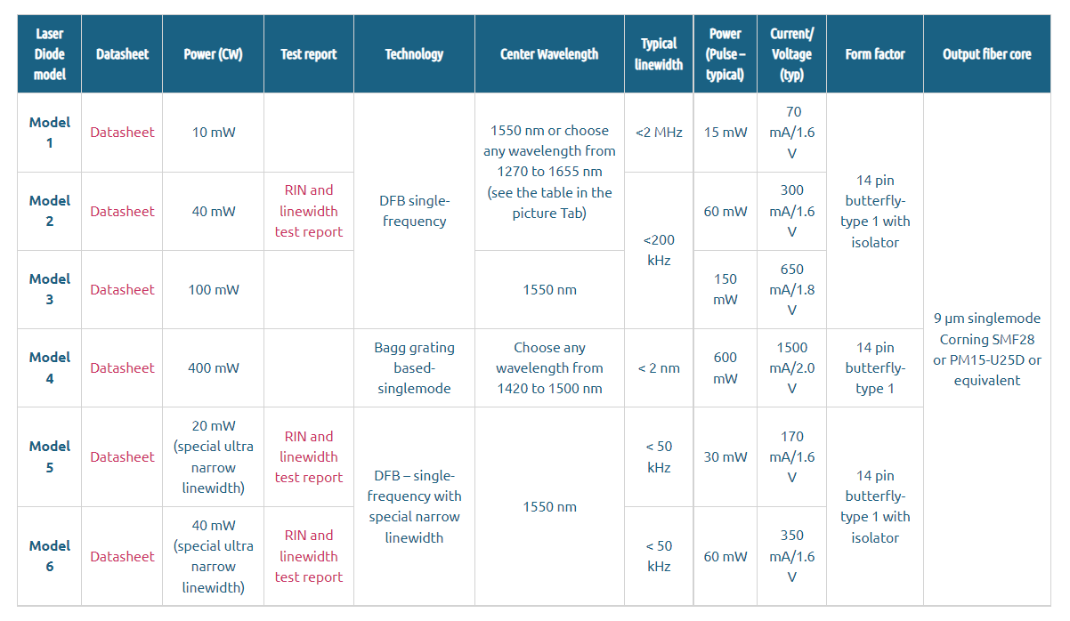 テクノロジー: DFB、Fabry-Perrot with Bragg