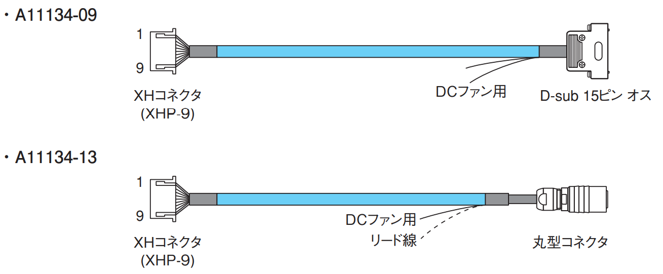 ケーブルA11134-08/-09/-13、-10/-11/-12と組み合わせることにより、QCLと周辺機器を接続します。
