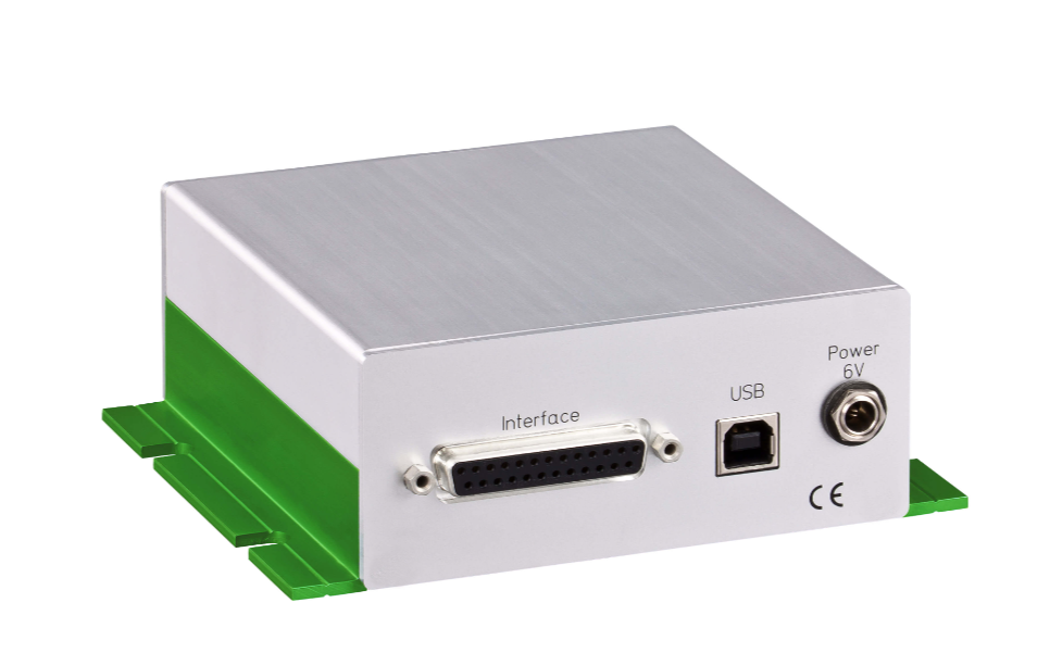 The voltage generated is then converted to a digital value via a 12 bit A/D converter. This process and all calculations and communication with the PC are controlled by a microcontroller. The measurement process is started via a command over the USB interface (software trigger). Alternatively, a continuous measurement stream can be started which samples at 600 S/s.