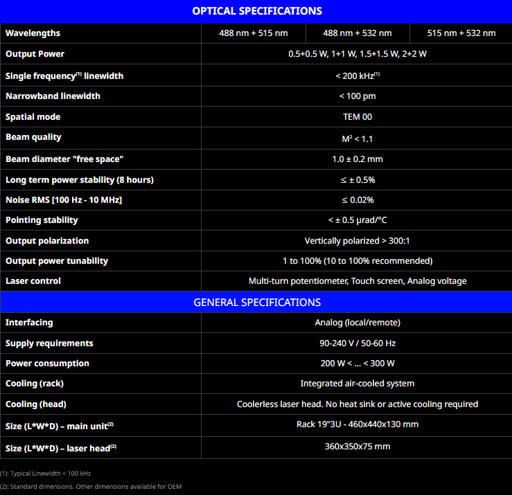 ULTRA LOW NOISE, SINGLE MODE, SINGLE-FREQUENCY CW LASERS