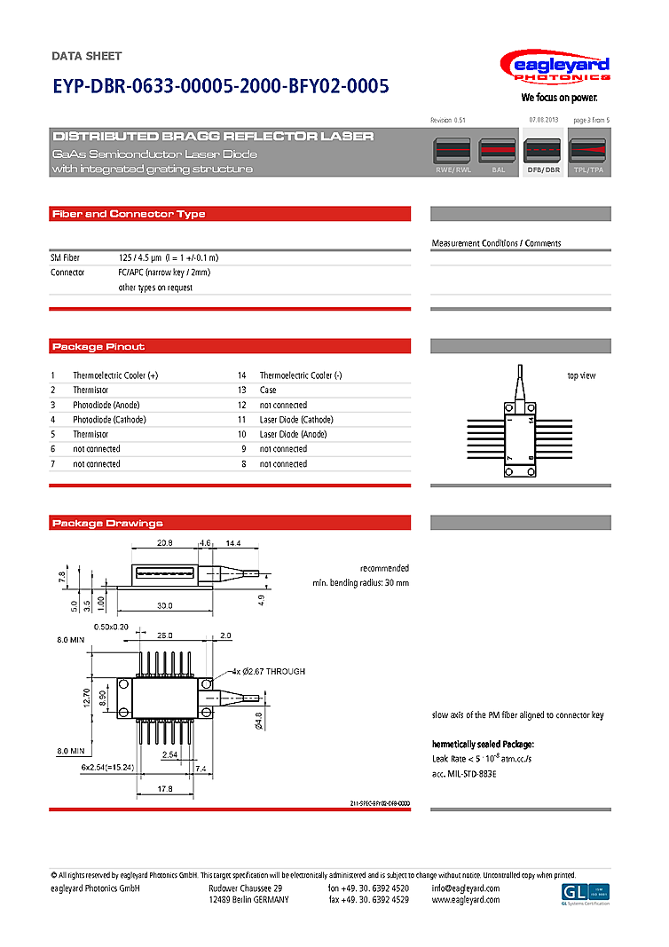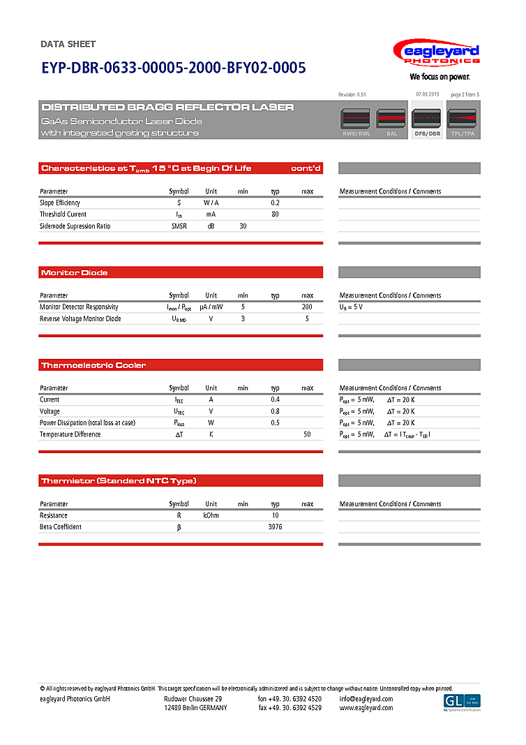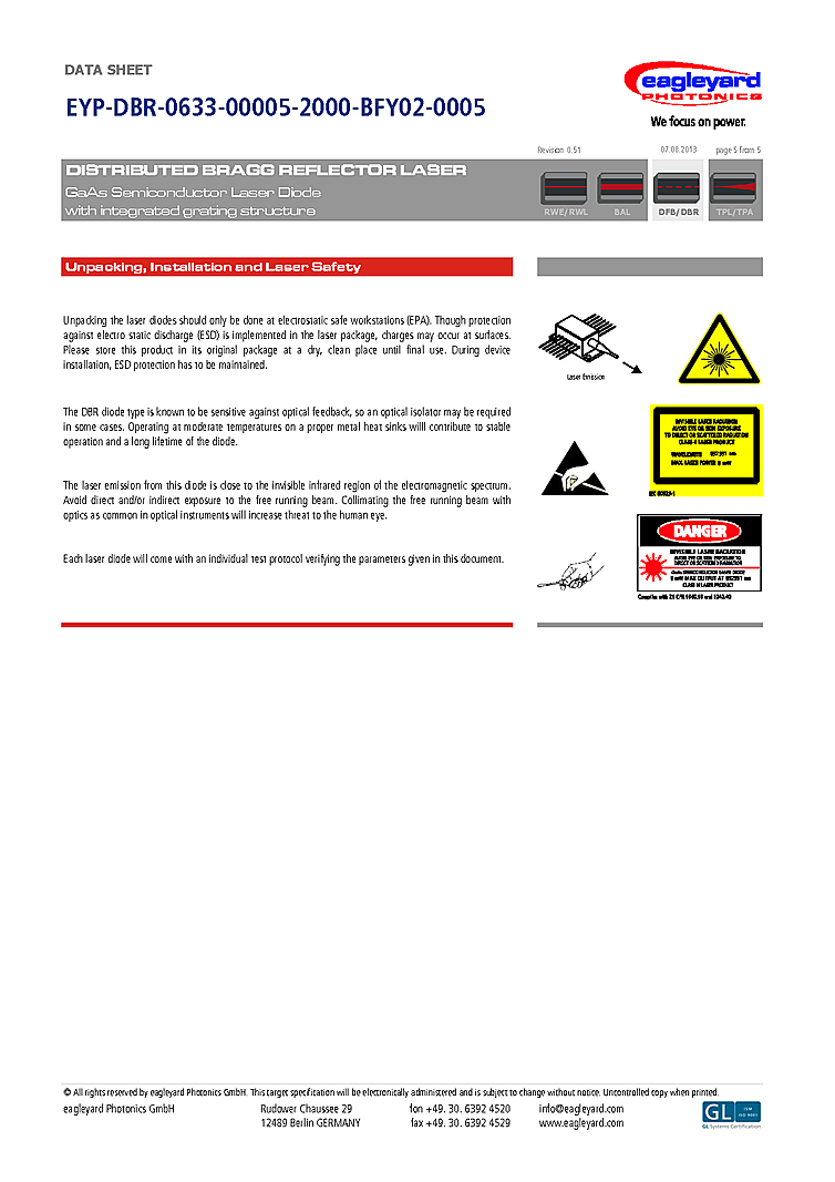 型番: メーカー:eagleyard Photonics GmbH 商品コード:L000395