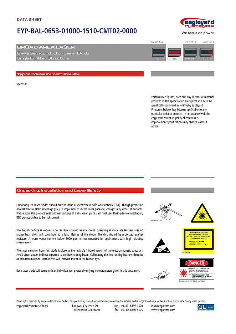 型番: メーカー:eagleyard Photonics GmbH 商品コード:L000399