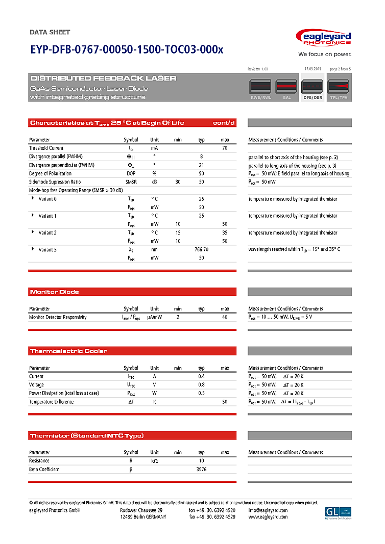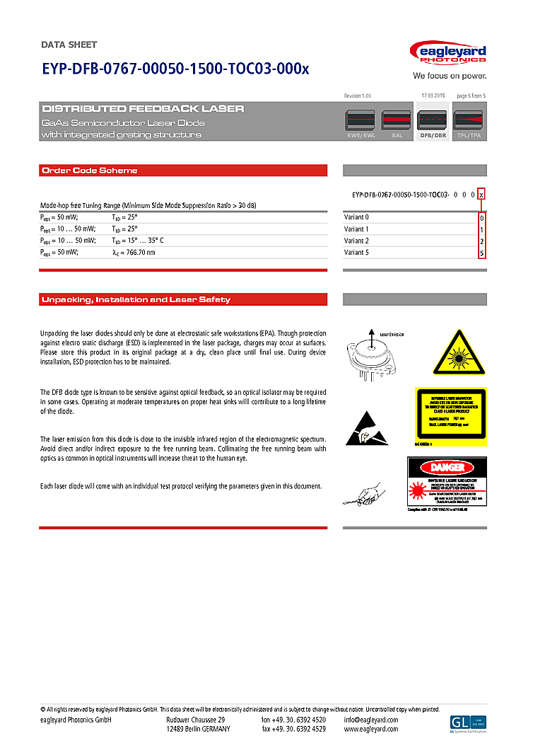型番: メーカー:eagleyard Photonics GmbH 商品コード:L000416