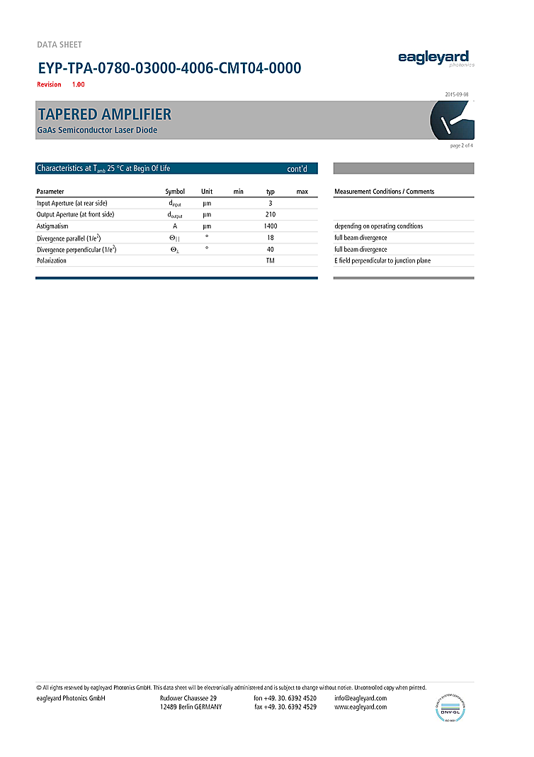 型番: メーカー:eagleyard Photonics GmbH 商品コード:L000420