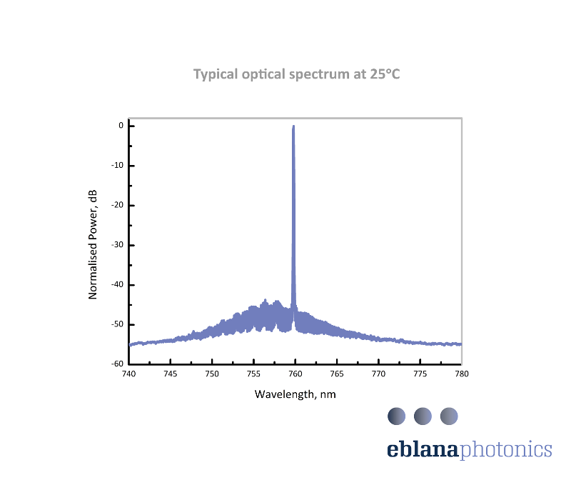 Eblana Photonics EP760-DM-BC laser diode, featuring butt-coupled fiber for reduced optical path length, is the perfect tool for TDLAS based O2 sensing. Eblana's patented Discrete-Mode (DM) technology is used to design a cost effective, highly coherent and stable single mode laser.