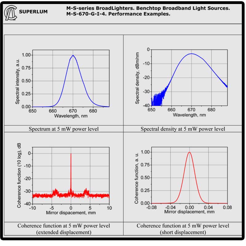 Superlum M-S-series BroadLighters are high-power, wide spectrum and low coherence AC powered benchtop light sources based on a single mode fiber coupled superluminescent diode modules (SLD) of Superlum. These broadband light sources have an appropriate built-in optical isolator to protect the SLD from optical feedback. Users can control key parameters of these light sources using a fully featured front panel interface or remotely through USB or a TTL trigger.