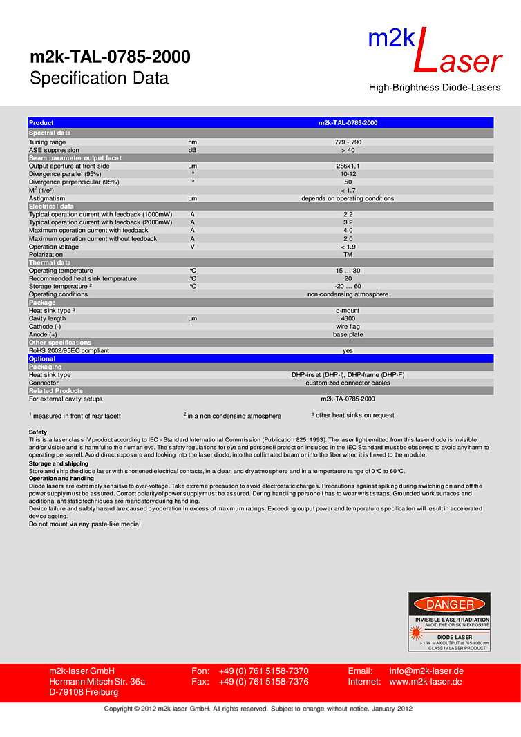 型番: メーカー:m2k-laser GmbH (COHERENT / DILAS) 商品コード:L000529