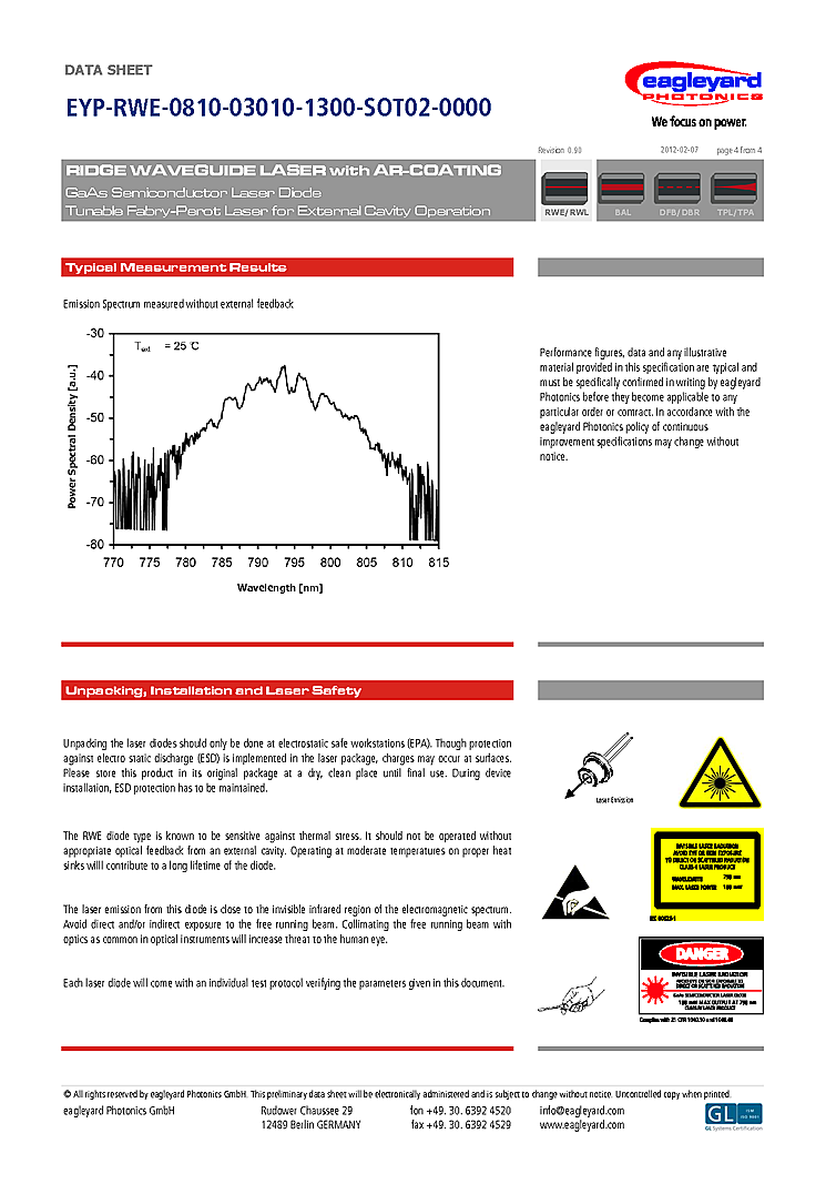 型番: メーカー:eagleyard Photonics GmbH 商品コード:L000578