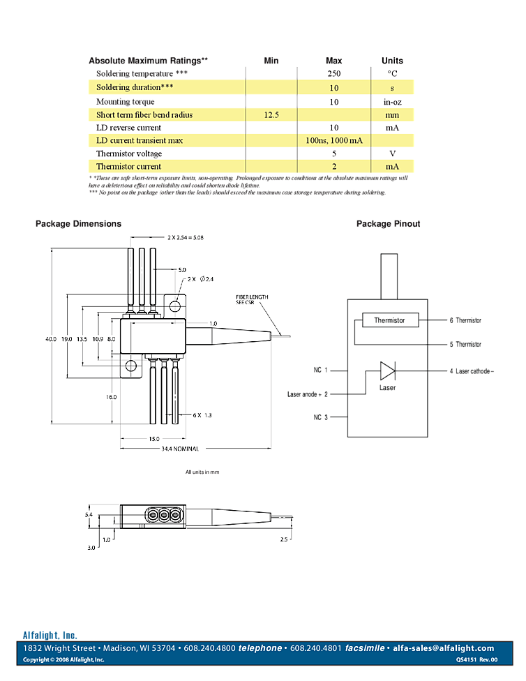 808nm 6-Pin Uncooled Industrial Laser With Monitor Photodiode.