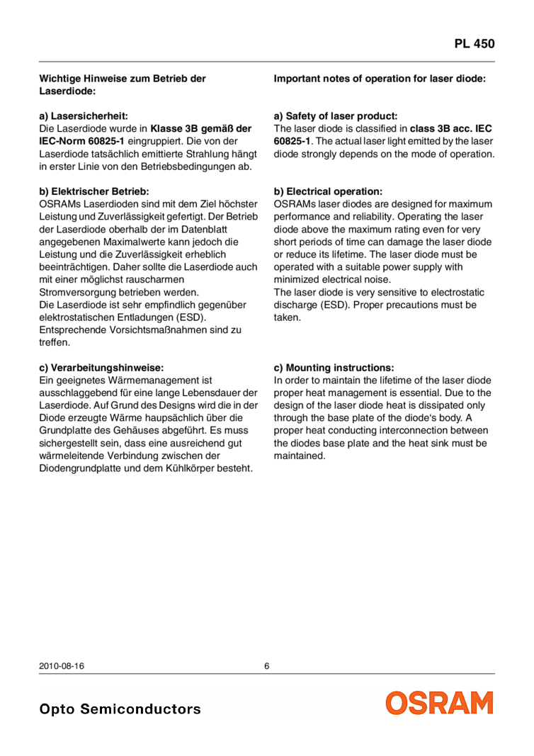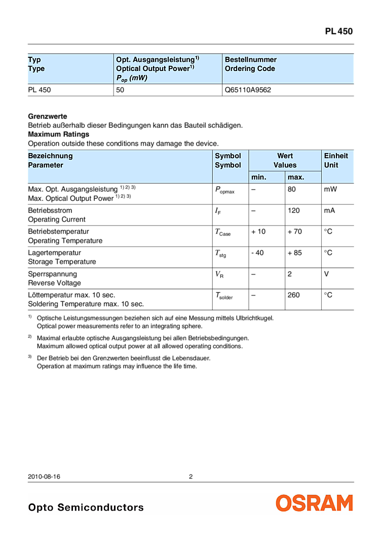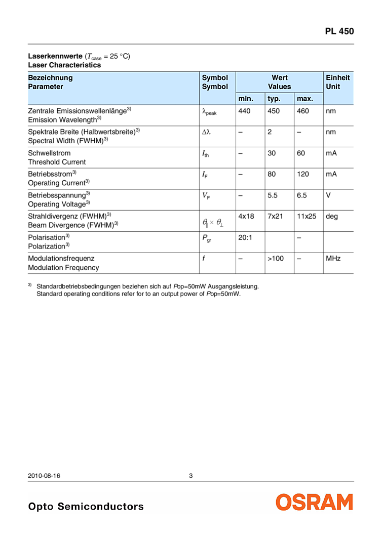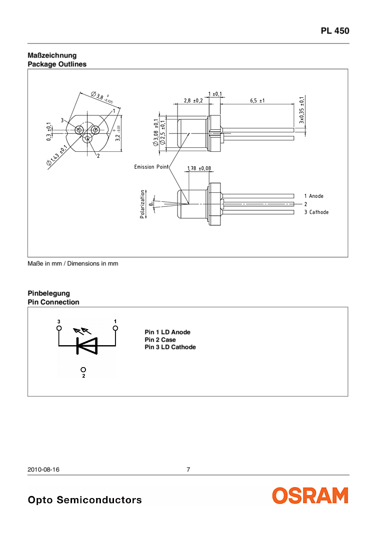 - Typ. emission wavelength 450nm, Single transverse mode semiconductor laser, in a miniaturized TO38 ICut package: