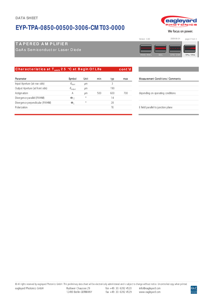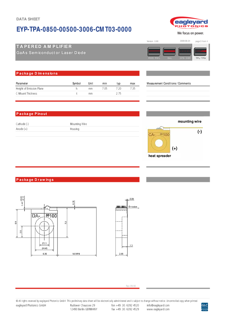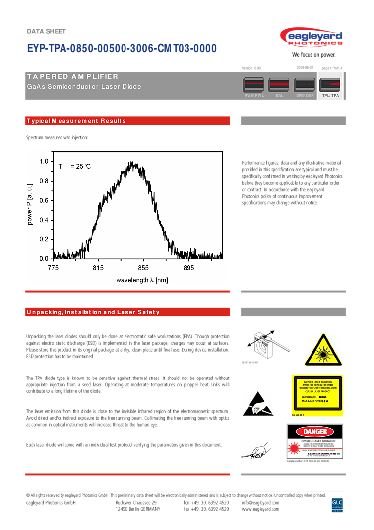 型番: メーカー:eagleyard Photonics GmbH 商品コード:L000673