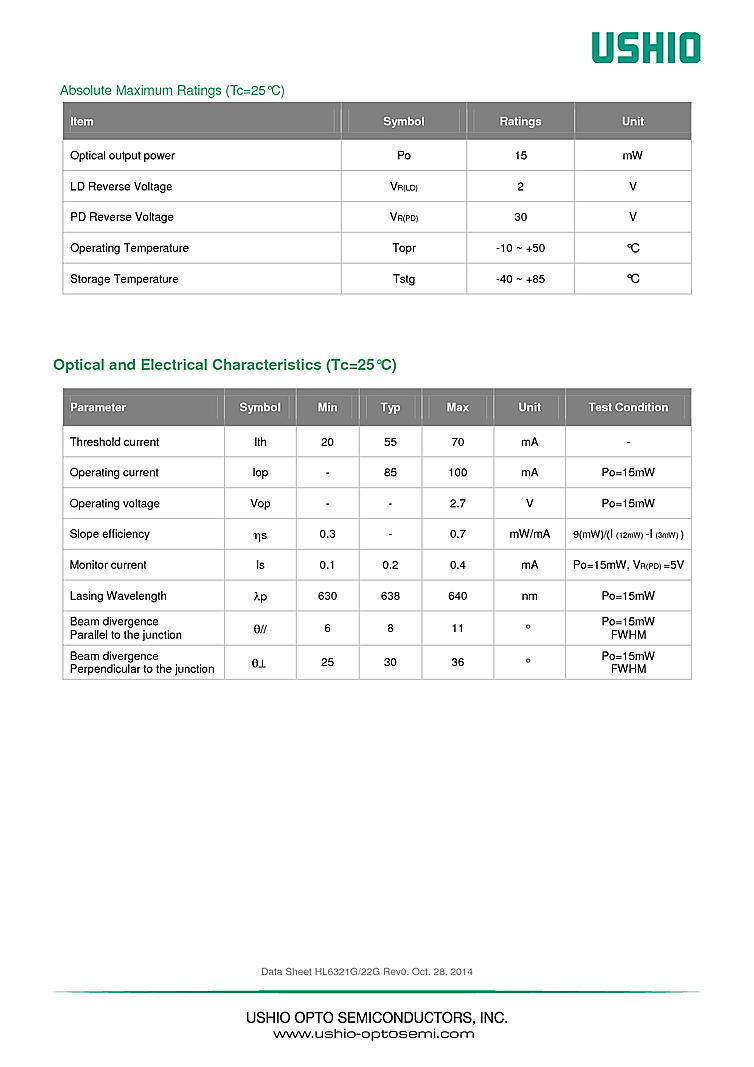 波長: 638nm-638nm 出力: 15mW-15mW パッケージ: TO-Can テクノロジー: AlGaInP Laser Diode